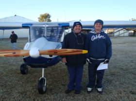 Anton Hoffman, voorsitter van die vliegklub, en seun Johan in hulle Cheeta vastevlerk vliegtuig was tweede met net een minuut uit. Willem Kruger in sy geel gyrocopter en Riaan van der Heever in sy Skyvan vastevlerk vliegtuig met Hennie Bester, ook ‘n vlieënier, as navigator moes die derde plek deel. Beide vliegtuie was twee minute buite hulle vlugplan se tydsduur.
