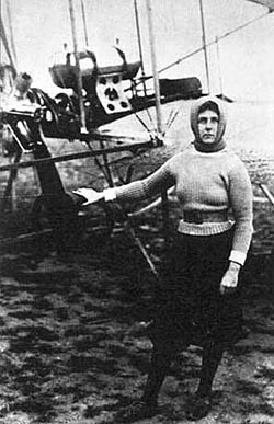 Die eerste gesertifiseerde vroue-vlieënier in die wêreld was Mademoiselle la Baronne de Laroche (1886-1919), ‘n Franse aktrise wat ‘n prys gewen het om ‘n vlieglisensie te bekom. Op 8 Maart 1910 verwerf sy dan op 24 jarige ouderdom Vliegsertifikaat no. 36 nadat sy in ‘n Voisin tweedekker gekwalifiseer het.