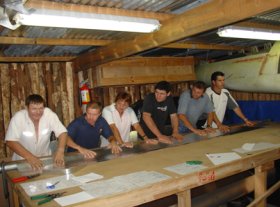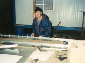 Rean tweede van links met sy vrou Annette langs hom en vriende besig met die vervaardiging van vlerk- gedeeltes.