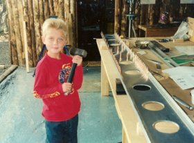 Rean besig met die klinknaels. Let op na die absolute konsentrasie!